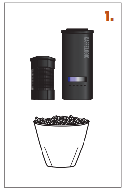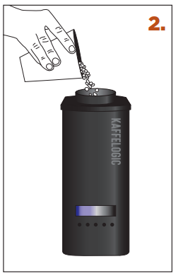 1. RECETTE – utilisez une cuillère rase de haricots verts. [Utilisez la cuillère fournie. Sinon, mesurer 120–160 ml ou 90–120 g. Ne surchargez pas. Si vous utilisez des grains de café moussonnés ou décaféinés, sont moins denses et il est recommandé de charger en fonction du poids ] |