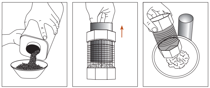 2. CHARGEMENT – retirez le collecteur de paille et versez le vert Les grains directement dans la chambre de torréfaction. |