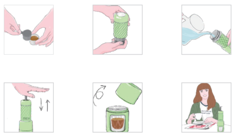 - Remplissez le panier à café avec du café moulu (7-10g) et appuyez doucement avec le fond de la tasse à mesurer.