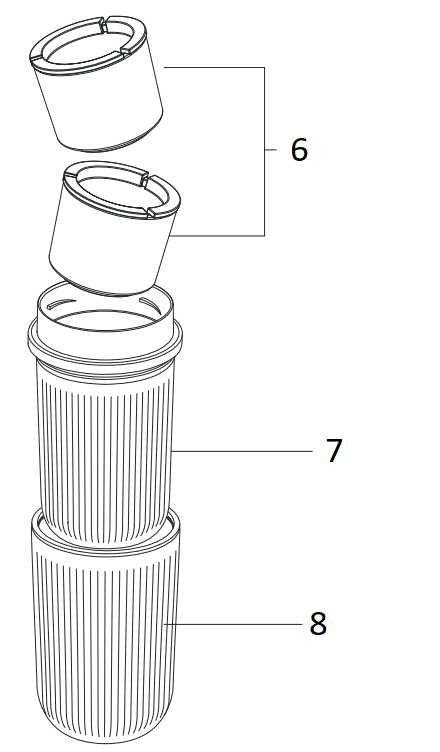 5. Placez le panier-filtre rempli de terre sur le dessus du corps principal. 6. Revissez fermement le Portafilter avec la bague d'adaptation dans le corps principal. | ![]() |