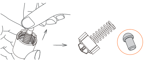 3. Retirez la petite pièce noire en silicone située à l'intérieur du ressort long. Remontez la buse. Veillez à ne pas perdre cette petite pièce noire.