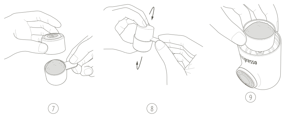 9. Remettez le panier-filtre sur le corps principal. Nettoyez s'il reste du café sur le bord du panier-filtre.
